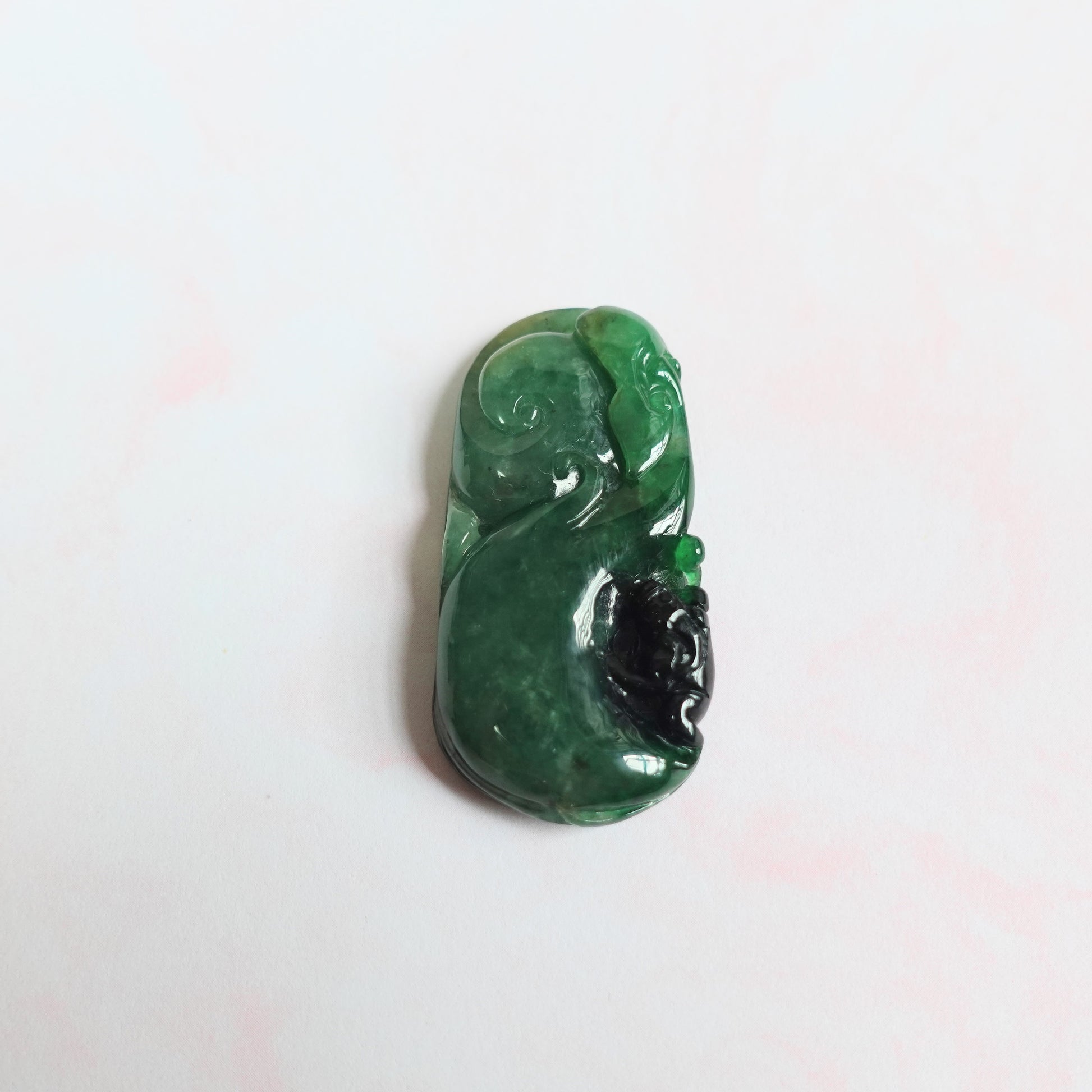 商品描述 :天然翡翠,滿綠如意帶墨翠