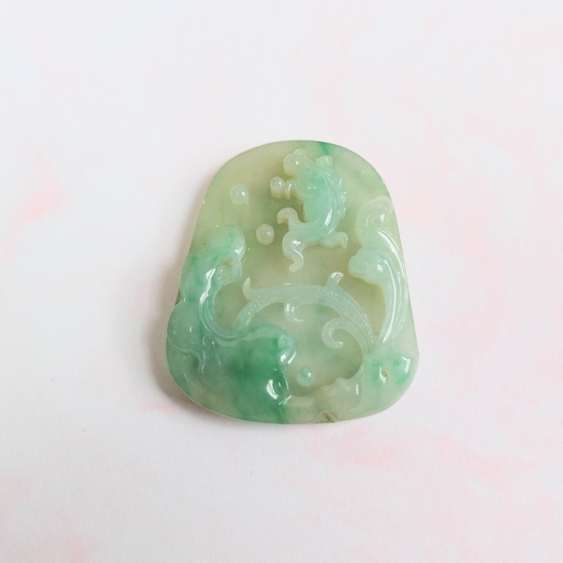 商品描述 :天然翡翠,冰飄花年年有魚 (附有香港鑑定證書)