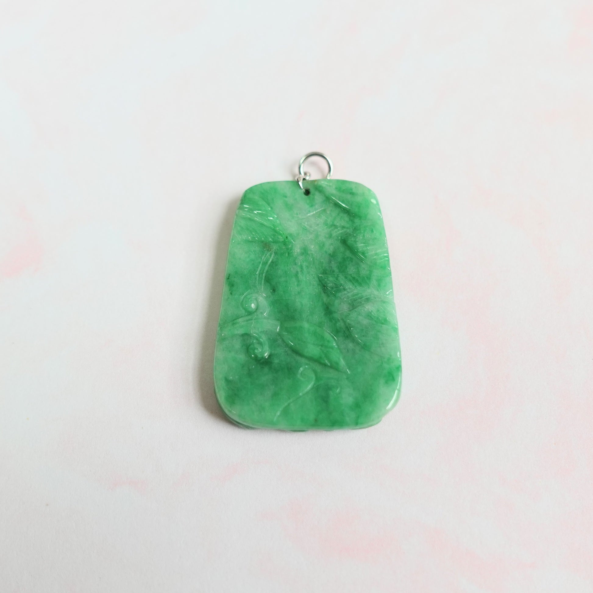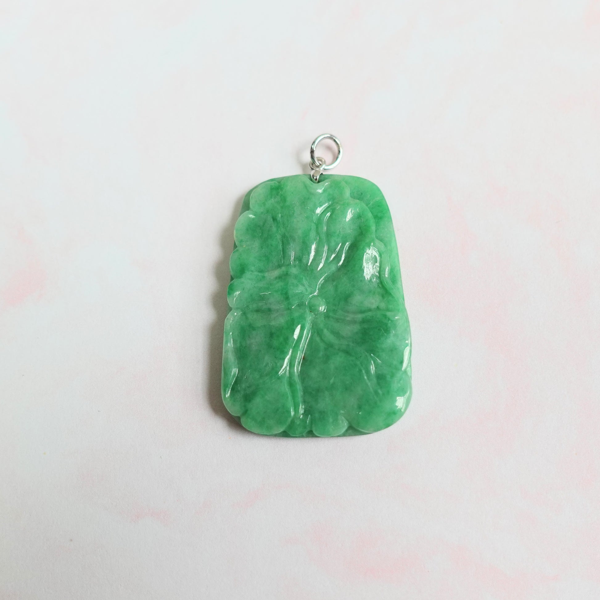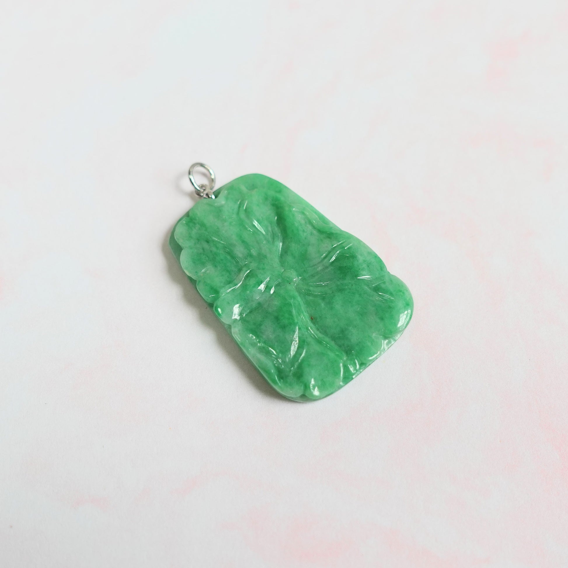 商品描述 : 天然翡翠,18K白金扣鑲嵌,白底青蓮葉