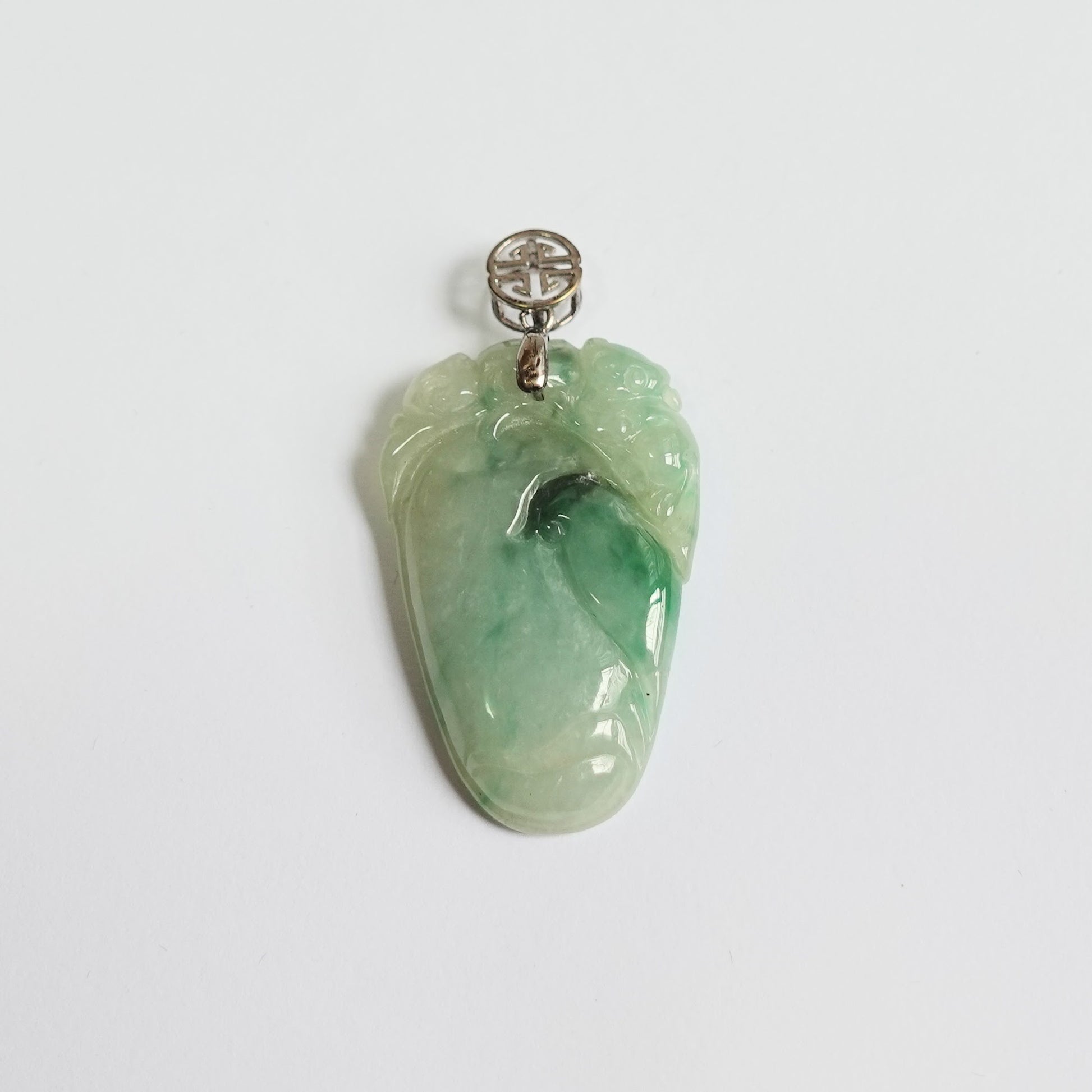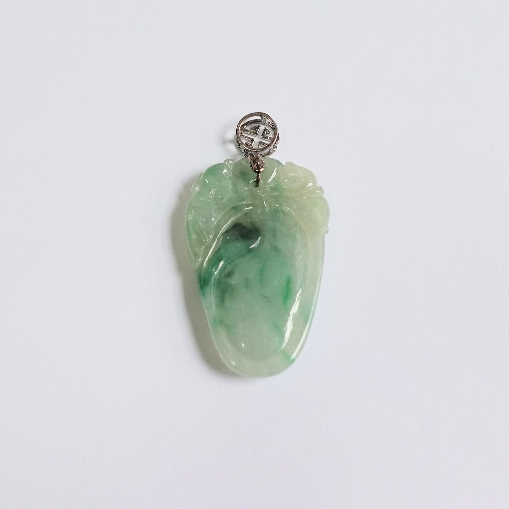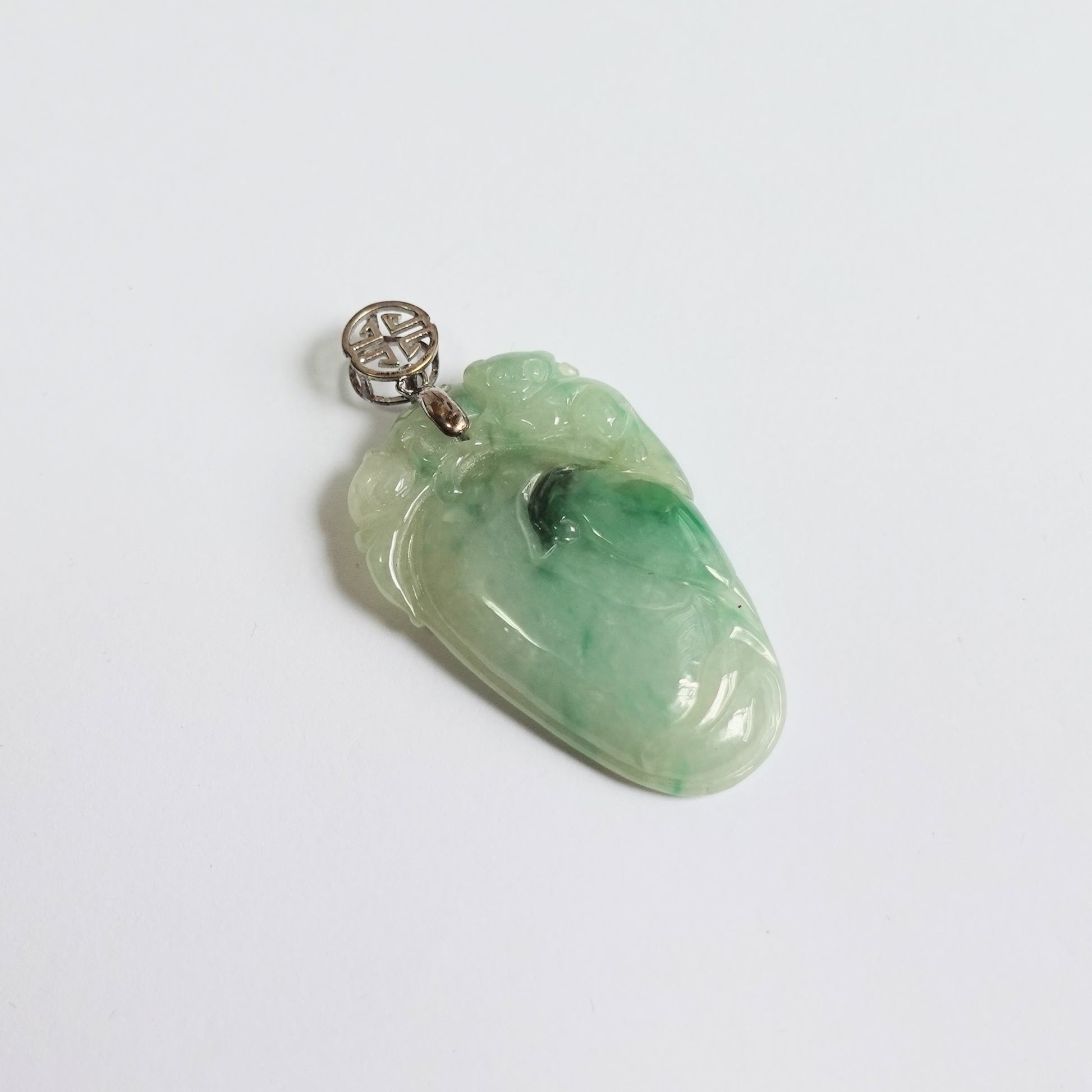 商品描述 : 天然翡翠,S925銀扣鑲嵌,豆種飄綠福瓜