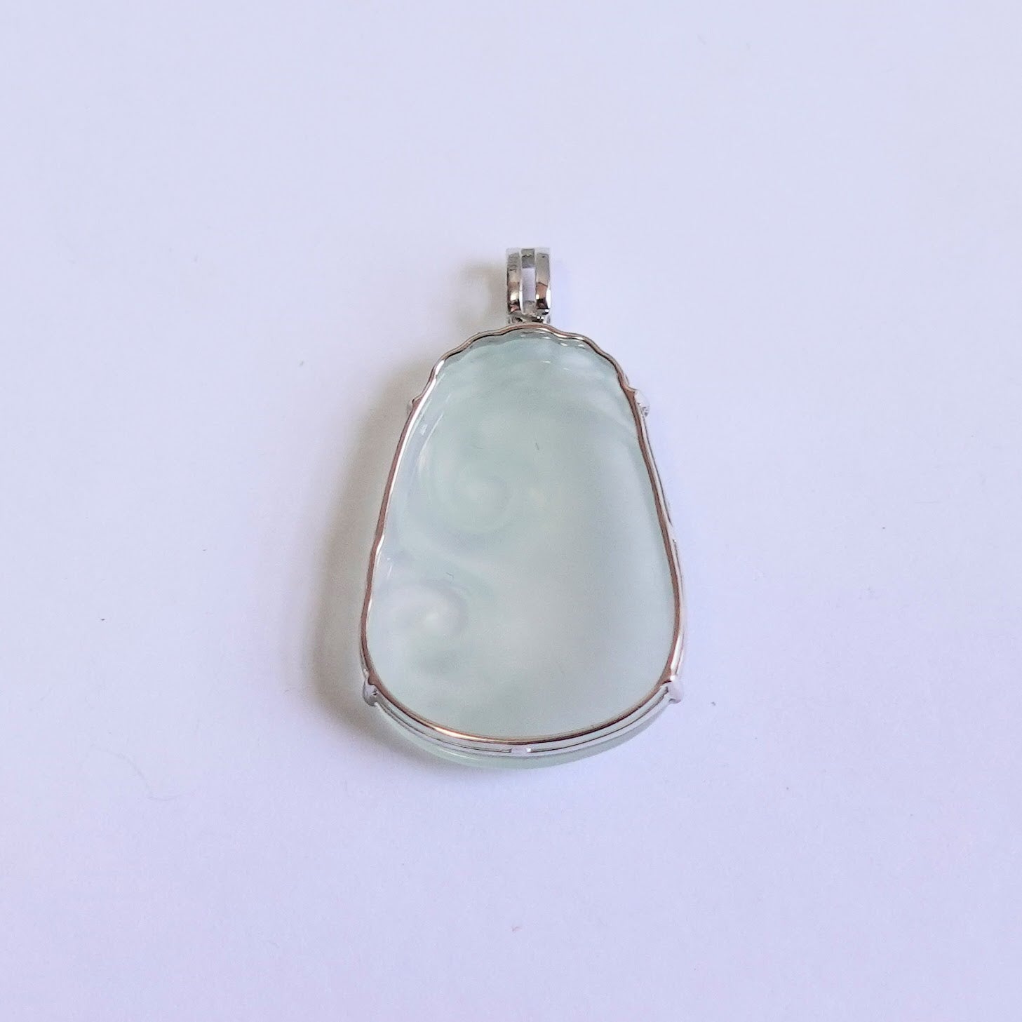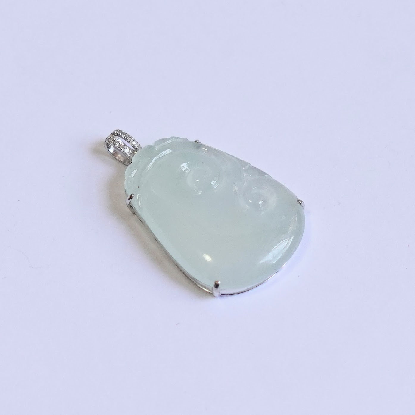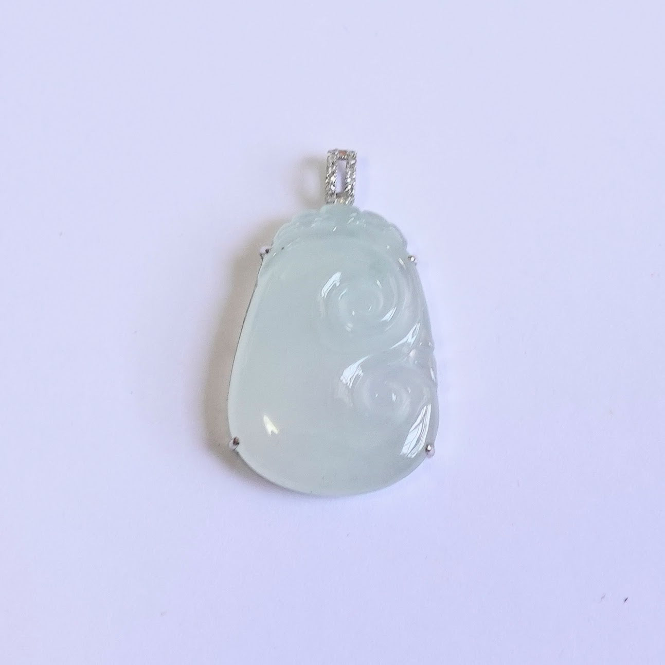 商品描述 : 天然翡翠,18K白金和鑽石鑲嵌,冰種如意