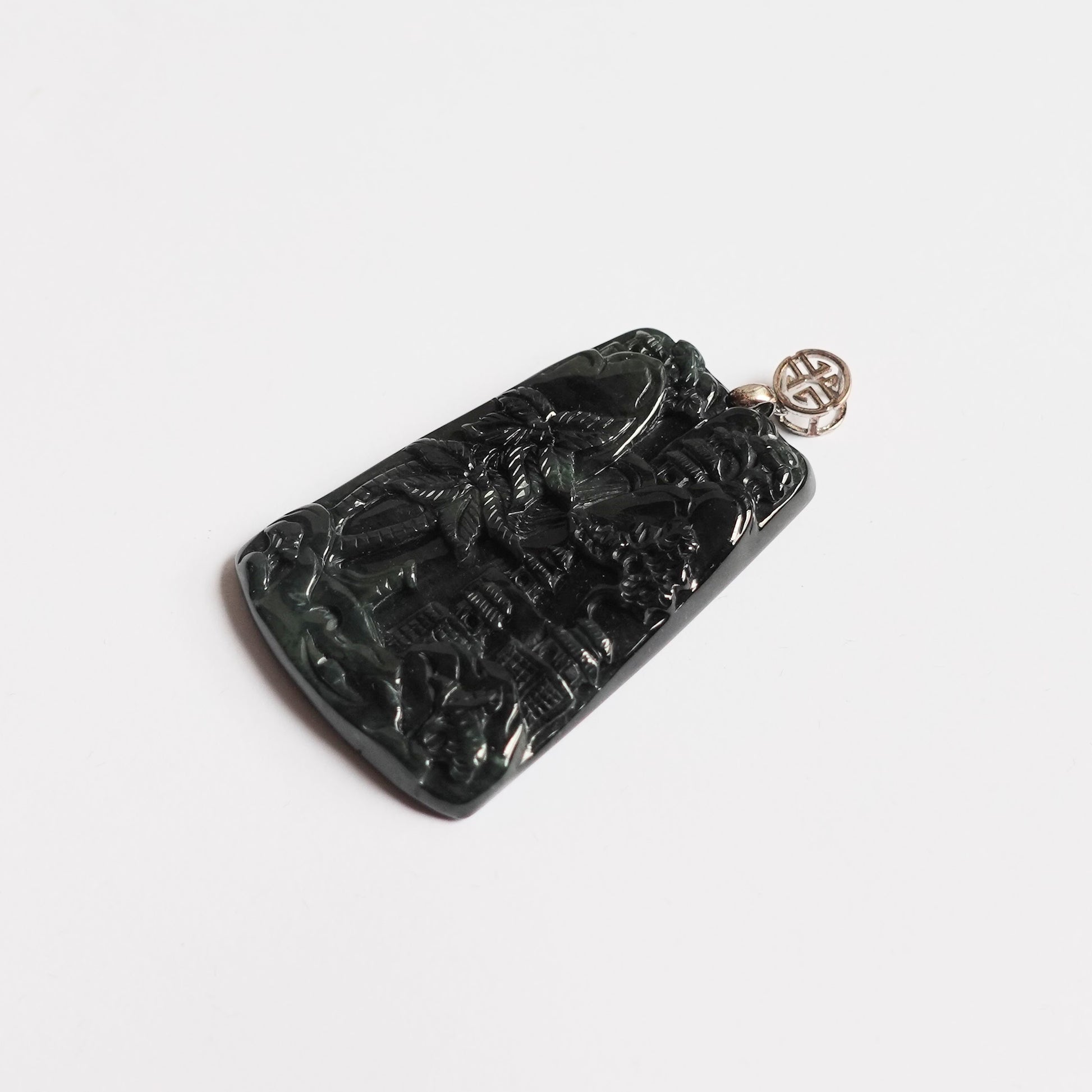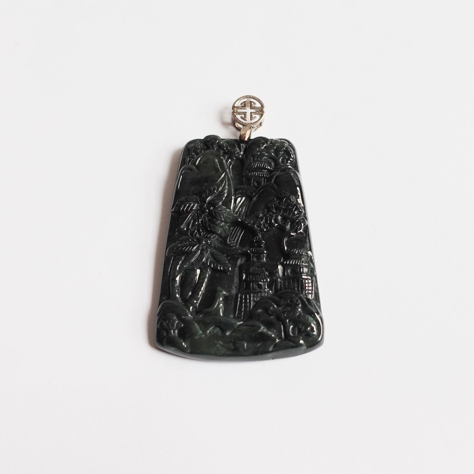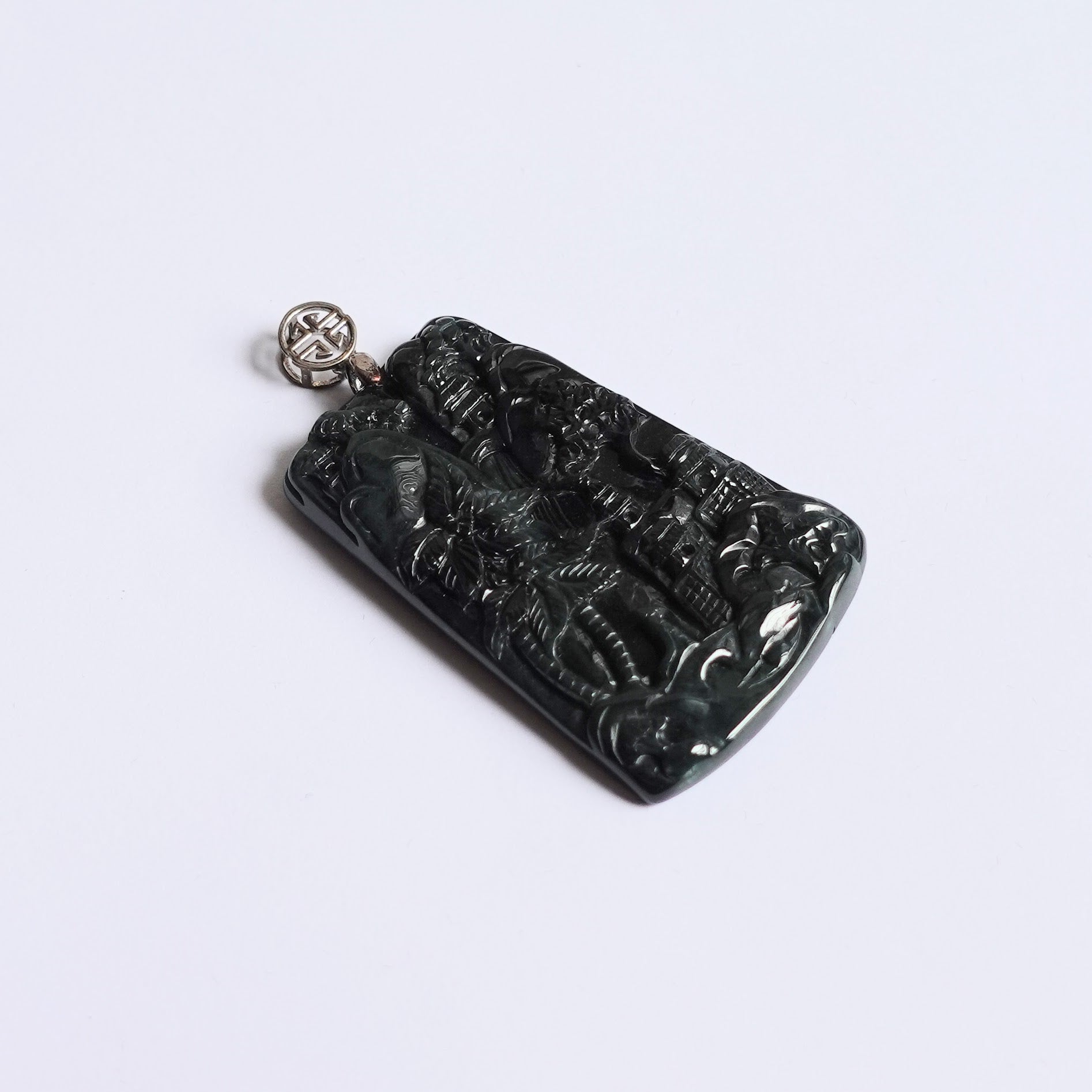 商品描述 : 天然翡翠,S925銀扣鑲嵌,老藍水山水牌